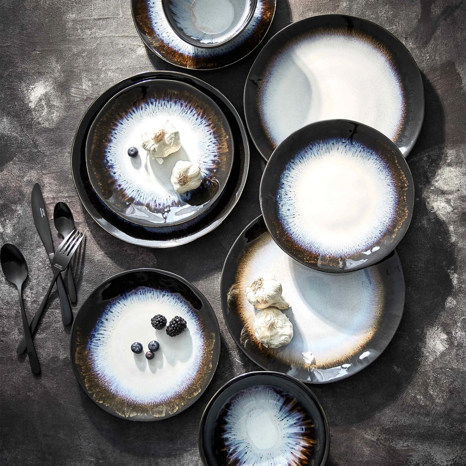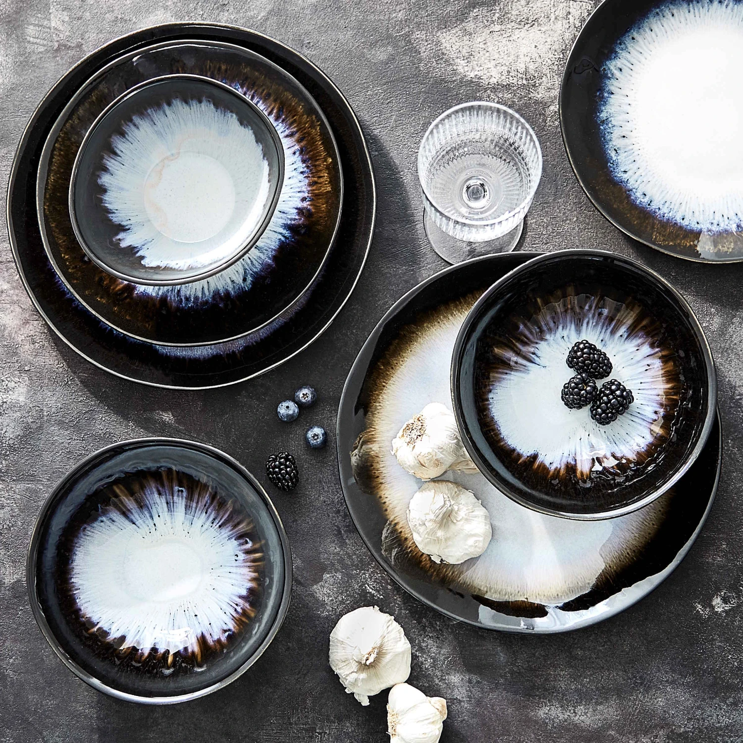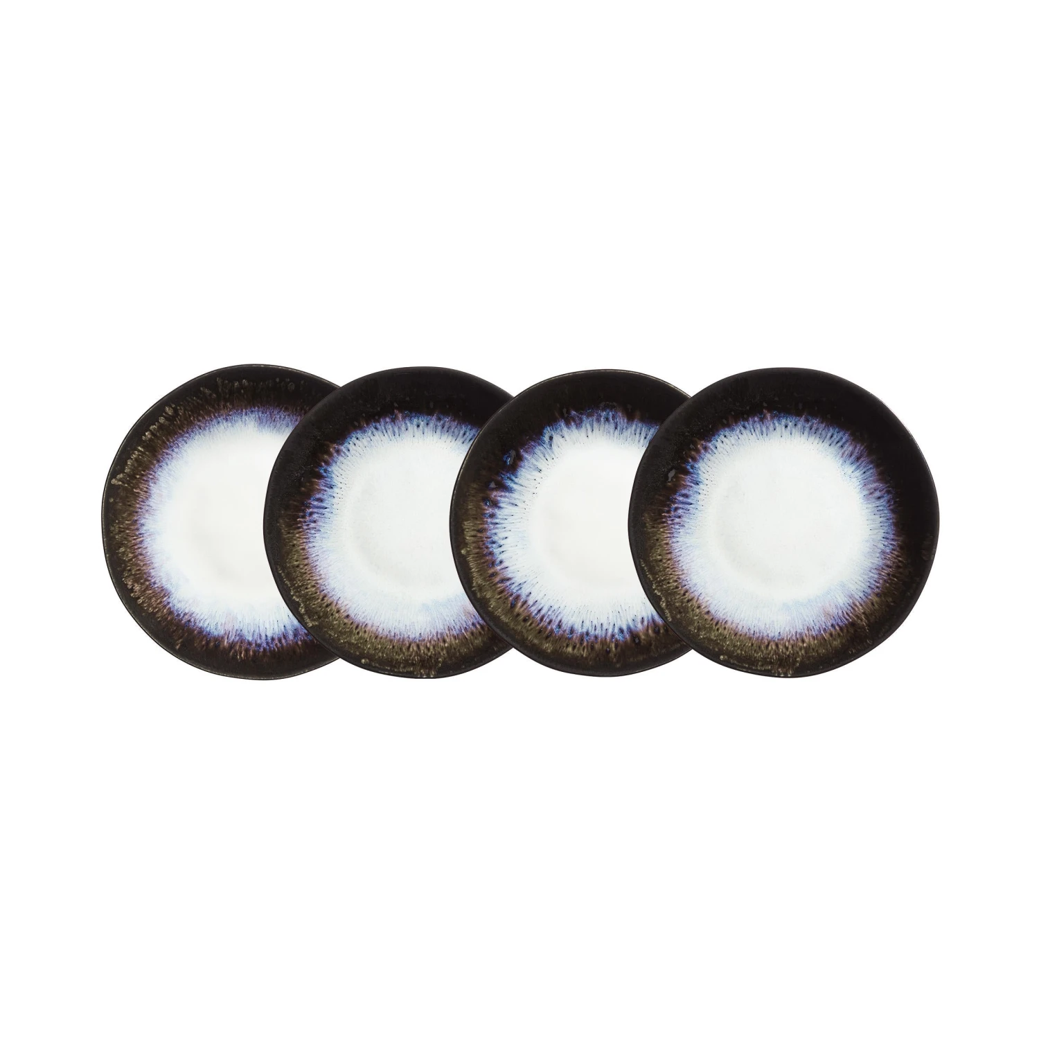Mit unserer Geschirrserie Atlantis im angesagten Boho-Stil und organischen Formen kommt Extravaganz auf den gedeckten Tisch! Der Frühstücksteller im 4er-Set aus Steinzeug ist handgefertigt in Portugal. Durch die reaktive Glasur entstehen unregelmäßige Farbverläufe, die jedes Teil der Serie zu einem echten Unikat werden lassen. Atlantis ist in verschiedenen Farben erhältlich, die Sie miteinander kombinieren können und so für Abwechslung auf Ihrem Tisch sorgen. Durch eine Iris-ähnliche Farbzentrierung passen alle Teile perfekt zusammen. Jedes Teil der Serie ist spülmaschinen- und mikrowellengeeignet.