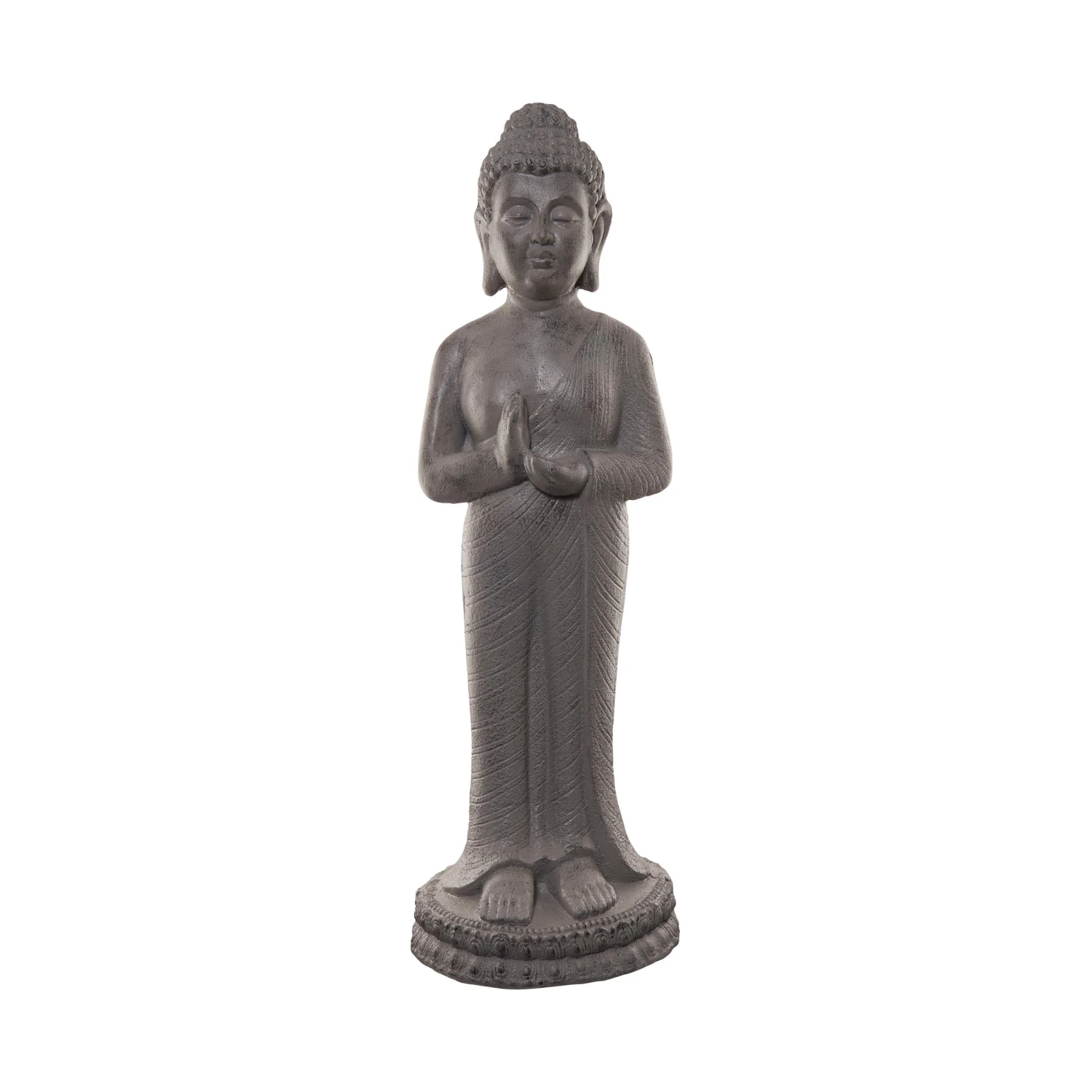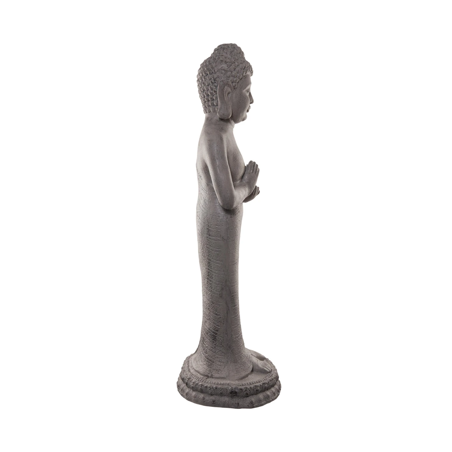 Gelassenheit und Kraft für jeden Tag: Die fast ein Meter hohe Buddha Statue im klassischen Stil verwandelt Ihr Wohn- oder Schlafzimmer in eine Oase der Ruhe und Entspannung. Dabei wirkt die Statue pur ebenso wie in Verbindung mit Blumenschmuck, Kerzen, Laternen oder Windlichtern. Aus Magnesia, für Indoor geeignet.