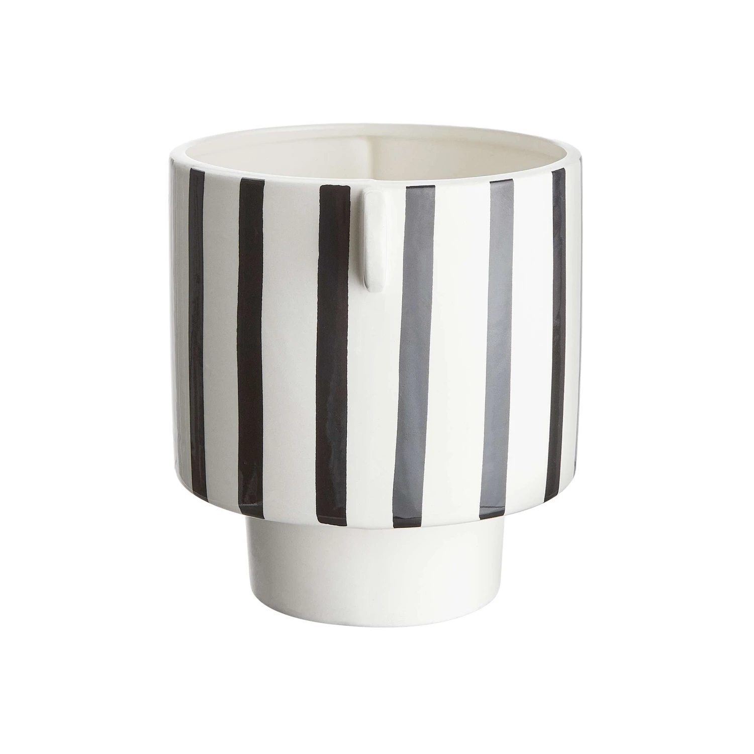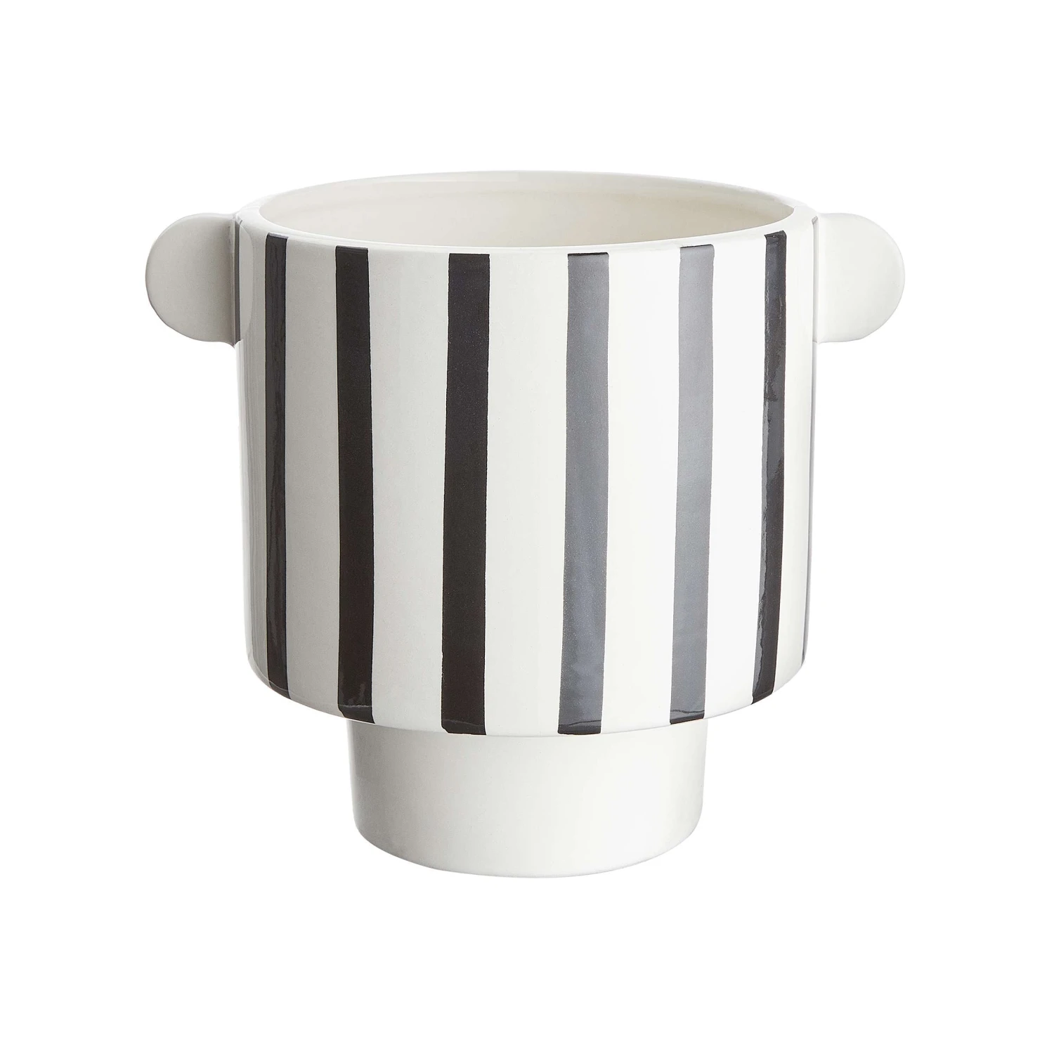 In Ihrer kleinen Sammlung von dekorativen Blumentöpfen darf der schwarz-weiße Lines Blumentopf nicht fehlen. Mit seiner ungewöhnlichen Form und dem geradlinigen Muster lässt er sich wunderbar mit allen möglichen Blumentöpfen kombinieren, und auch mit Windlichtern, Vasen, Dekotabletts oder Kerzen entsteht ein optisch spannender Mix.