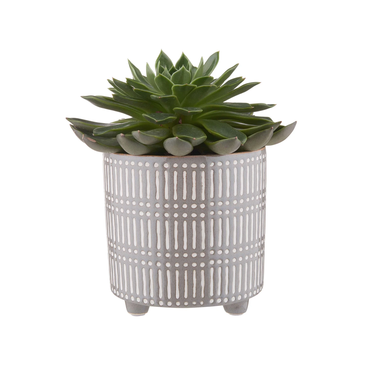 Trendige Blumentöpfe wie der Stiches Blumentopf Streifen aus Steinzeug in Grau-Weiß machen Vasen fast ein bisschen Konkurrenz. Denn mit ihrem modernen Design und einer dekorativen Pflanze können sie sich in Ihrem Zuhause mindestens genau so chic sehen lassen wie eine Vase mit Blumen oder Zweigen.