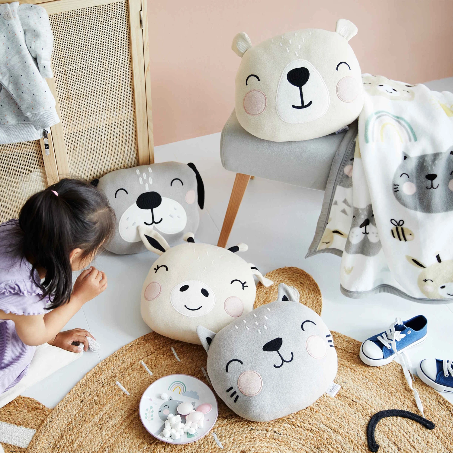Kissen und Kuscheltier in einem: Das liebevoll gestaltete Tiny Town Kissen Giraffe ist für das gemeinsame Spielen, Rumlümmeln oder Schlafen jederzeit zu haben – ob im Bett oder auf dem Spielteppich, im Kindersessel oder auf dem Familiensofa. Das hübsche Tiergesicht, die lustigen Ohren und die rundliche Form machen das Kissen dabei zu einem richtig guten Freund und Dekostar im Kinderzimmer. Verschiedene Varianten erhältlich, ideal auch zum Kombinieren.