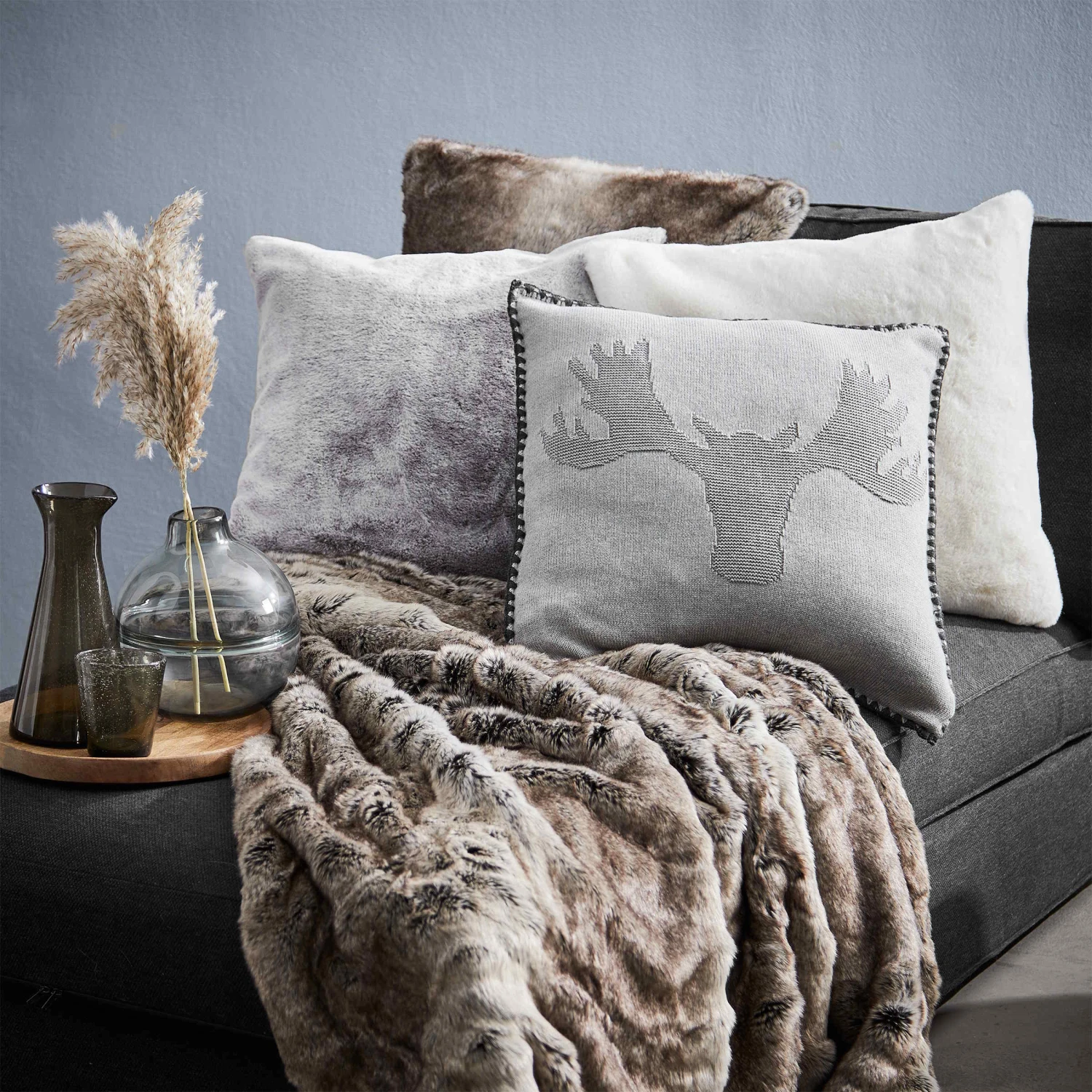 Kuschelzahm: Mit dem dekorativen Fellkissen machen Sie es sich drinnen so richtig gemütlich, wenn draußen der Winterwind um die Ecken pfeift. Passende Felldecke und weitere Varianten erhältlich. Weil die Wild Thing-Serie keinem Tier etwas zu Leide tun kann, ahmt sie die schönsten Felle auf Decken und Kissen naturnah in Polyester nach.